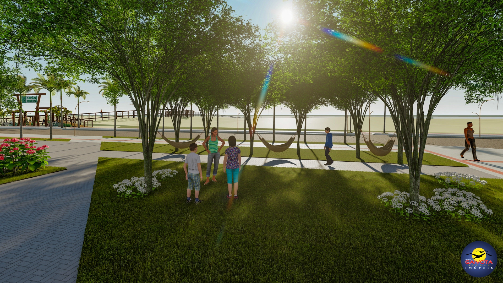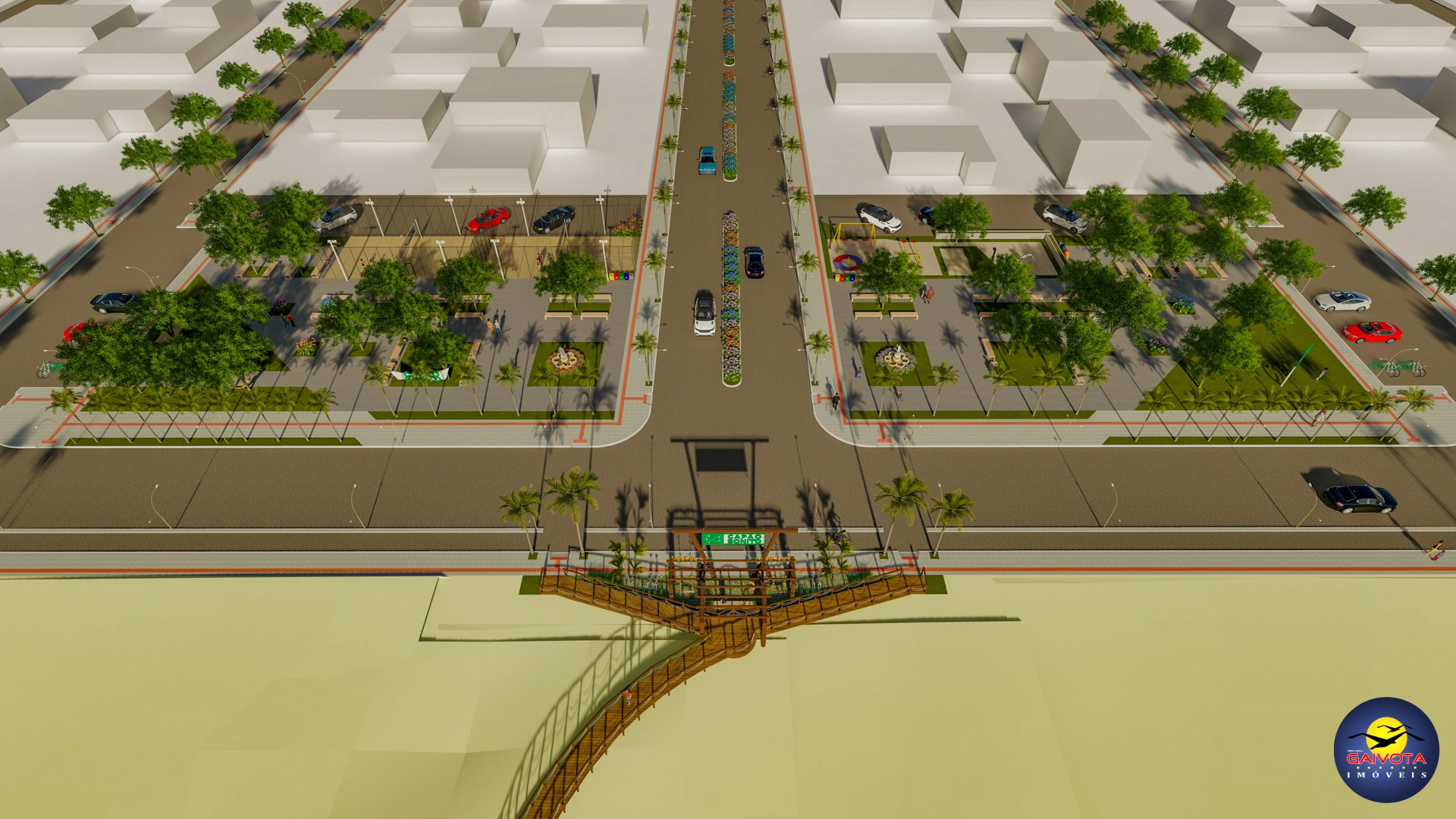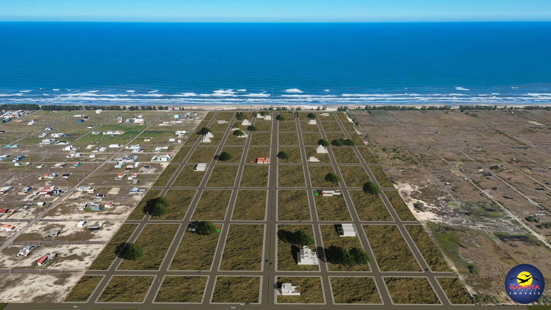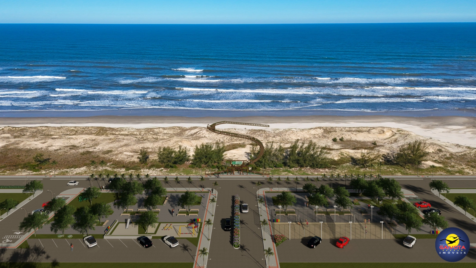 Dentro do loteamento, áreas arborizadas criam um ambiente mais fresco e acolhedor, enquanto a passarela de acesso ao mar, convida a desfrutar do litoral com praticidade e segurança.
